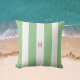 De perfecte gepersonaliseerde gooienkussens voor je buitenruimte deze zomer... zee groene cabana strepen met zandroze monogram. Personaliseer je eigen initiaal. Overeenkomende accessoires beschikbaar in ons minimale monogram Cabana Stripe-Collectie.