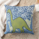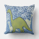 Groene Dinosaur op Zigzag Chevron - Blauw en wit Kussen
