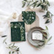 Robuust modern natuurlijk monochroom groen floraal en botanisch trouwdecor-programma. Met prachtige scripttekst en groene, grijze en witte bladzijden waterverf details. Dit moderne bruiloft collectie zal zeker de stijl bepalen voor je grote dag.