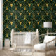 behangpapierturkskunstdecogroengoudgroen goud behanggroene art deco wallpapervormengouden art decopauw