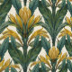 Tropisch ogende bladeren in groen en goud, met gouden bloemige elementen zullen elegantie toevoegen aan elke kamer met dit behang.