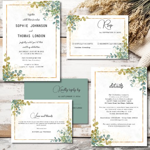 Green and gold eucalyptus watercolor wedding Ontworpen door Ala De