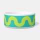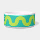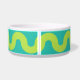 Groene golven op blauwmaat voerbakje