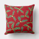 groene hulst met gele bloemetjes, op rood, is gedrukt op kussens voor de feestdagen. De holle bladeren zijn verschillende tinten groen, met hoogtepunten van geel en bleek groen. Dit is van een schilderij dat ik maakte en het ontwerp is aan beide zijden geprint. Bedankt voor het winkelen bij CherylsArt on Zazzle.