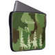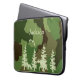 Groen, bruin camouflagepatroon. Bos- en wildsilhouetten in lichtgroen. Dennenbomen, een eland en een vos met een arend die over het bos vliegt. Sjabloon voor uw naam, lichtgroene letters. Een mouw voor een jager, kampeerder en/of actieve buitentype man