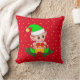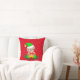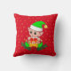 Cute green Kerstplank, pine, poinsettia & gouden sterren op rood achtergrondSierkussen.