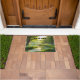 Deurmat met een kunstschilderij van een rustige landschapscène met bomen, een kreek en groene natuur
