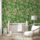 Groene perzikkleur bloemschil en stok behang
