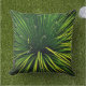 DIT BUITENKUSSEN HEEFT EEN INTERESSANTE HOEK DIE NEERKIJKT IN EEN GROEN SOTOL-PLANT (DASYLIRION) MET ZIJN VERSCHILLENDE TINTEN GROEN. DE GEKARTELDE MESSEN MET TASELS OP DE TOPPEN, MORSEN OVER EN NEER OP DE GROND