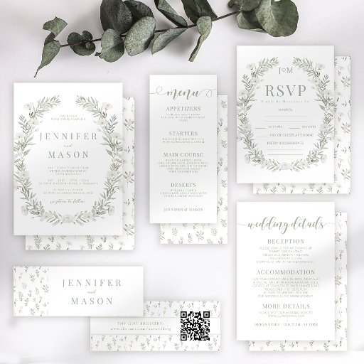 Greenery leaves with white flowers rustic weddingOntworpen door Ramune Freze