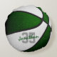 Dit coole team kleurt basketbal thema kussen voor hem of haar beschikt over het realistische afbeelding van een basketbal die afwisselend groen en wit herkleurde panelen heeft - personaliseer met de naam van de speler in een lettertype in "autograph"-stijl dat het jersey nummer van de atleet overziet - door katz_d_zynes