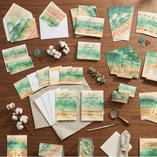 Groene Zon Ocean Beach Zand Monogram Bruiloft Planner