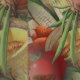 Aangepast aan een antiek boekillustratie, heb ik dit smakelijke naadloze boerderij gemaakt om de wanden van uw stijl te versieren. Het afbeelding bevat meloen, tomaat, selderij, maïs, groene bonen en wortels.