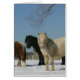 Groep minipaarden in de sneeuw