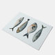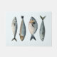 "Vier vissen" van Emma Scarvey. Biedt vier vissen op een witte achtergrond.