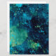 Een grungy mixed media-ontwerp in een turquoise en gele kleurpalet, op een donkere achtergrond.