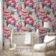Groot vet roze pioenrozen kleurrijk patroon behang