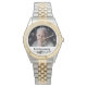 Personaliseer en voeg je eigen foto toe. Een wit lijst met zwarte tekst. Witte cijfers van 9 tot 3. Met de tekst: In loving memory.