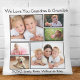 Vier de beste grootouders met dit aangepaste witte fotokussen met een 6-fotocollage van hun kleinkinderen, familieleden, huisdieren, enz., "Ik hou van je" of "We houden van je" en hoe ze worden aangesproken, bijv. "Oma & opa", "Moeder & Pop Pop", enz. U kunt ook de namen van de kleinkinderen toevoegen in elegante typografie.