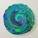 Groovy Abstract Retro Green en Blue Swirl Rond Kussen