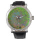 Groovy Abstract Retro Lime Green en Blue Swirl Horloge
