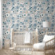 Baby boho blue floral seamless pattern wallpaper; great addition to any infant or child's bedroom or other.