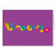 Een leuk ontwerp dat doet denken aan het tijdperk van de 60er hippie "flower power". "Groovy" in heldere regenboogkleuren en madeliefachtige bloemen. Binnenzijde is leeg. Grafische kaarten komen van realdealclipart.com.