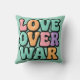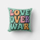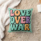 Voeg een vleugje kleur en een krachtige boodschap toe aan je leefruimte met dit "Love Over War"-werpkussen. De zachte stof en het levendige, groovy jaren '70 bubbelletterontwerp zorgen voor zowel een gezellig gevoel als een vredig statement-stuk. Het is het perfecte accent voor een bank, stoel of bed, ideaal voor diegenen die houden van een niche retro interieur en het bevorderen van harmonie.
