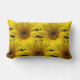 Het originele gele zonnebloempatroon op dit levendige bloemkussen is een grote madeliefjesbloem. De citroengele bloemblaadjes die het bruine midden van de bloem omringen vallen op en lichten elke doffe hoek op op een bank of bed op. De gele kleur poppen echt. De achterkant van het kussen heeft hetzelfde madeliefje maar de madeliefjes zijn gelijkmatiger gespreid.