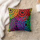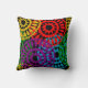 Deze werpkussens hebben een ontwerp uit de zwarte geschiedenis van grote cirkels die uit regendruppels en cirkels in rood, geel, paars, groen en turquoise worden gevormd.