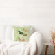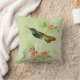 Het ontwerp van de Square goot kussen is voorzien van een illustratie van de Magnificent Hummingbird (Eugenes fulgens.) Een groene en goudkolibrie baars op de tak van het thibaudia-plant met fel roze bloesems met een lichtgroene waterverf achtergrond.