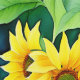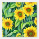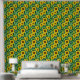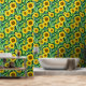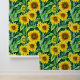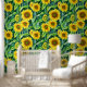 Prachtige waterverf zonnebloemen stok en schil behang. Geel, groen en bruin bloemenbehang voor degenen die van zonnebloemen houden.
