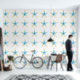 waterverf stijl AI-kunst met een bleek blauw en bruin zeesterrenpatroon op een witte achtergrond.