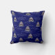 Vun surfer-kussen, aan de voor- en achterkant voorzien van een patroon van schattige witte haaien en golven boven blauw van de marine
