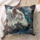 *~* Grote Wolf Totem Blauw Abstract Polyester Boho Kussen