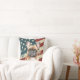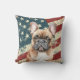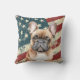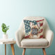 Een prachtig waterverf portret van een Franse Bulldog is geplaatst tegen een grunge achtergrond van de Amerikaanse vlag. Beide zijden van het kussen hebben hetzelfde afbeelding.