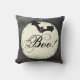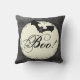 Een elegant Halloween-ontwerp dat Boo zegt! op een achtergrond van een volle maan en een spooky bat. Deze spookachtige kussens zullen een leuk accent toevoegen aan je Halloween decor.