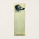 Een grof portret van een jong meisje dat skyward kijkt en een zwarte kap terugduwt, in tinten van blauwen, groenen en zwart op een verouderde perkamentachtergrond.