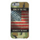 Dit patriottische iPhone 6-hoesje heeft een khaki groen, bruin en zwart camouflage achtergrondpatroon met een rode, witte en blauwe grijze Amerikaanse vlag boven op het met de woorden "Home of the free, by the dappere". Dank uw favoriete soldaat of militair personeel met een passend eerbetoon aan hun dienst. Als je hulp nodig hebt, stuur dan een e-mail naar niteowlstudio@gmail.com.