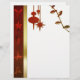 Een moderne en abstracte kerstillustratie: een gouden krant met een rand op een grijze rode achtergrond met kerstelementen.