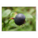 Die Grossaufnahme einer wildwachsenden Waldheidelbeere mit einem Wassertropfen vor grünem Hintergrund ist auf dieser Grusskarte zu sehen. Die Karte ist deken.