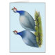 De late guineas show geen polka stippen op hun veren, omdat het een zachte blauwe grijs is, donkerder naar de nek en het hoofd.