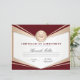 Deze moderne professionele certificaat van prestatie award beschikt over rode en beige kleurtinten, en een subtiele witte en grijze gradiënt achtergrond. Inclusief een medailleprijs met rode sterren. Personaliseer naar uw wens.