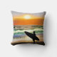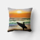 Surfer staande op de oceaan kust bij zonsondergang AI kunst.