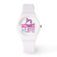 Kleurrijk gymnastiek horloge met de tekst, "Gymnastiek is mijn leven". Het heeft een turnsilhouet dat het woord "Gymnastiek" lijkt te gebruiken als een straal. U kunt de achtergrondkleur wijzigen met de knop "Aanpassen". (LICHTE KLEUREN werken het beste) ©gollygirls.com