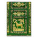 Foto van een traditioneel zigeunerkaravaan met een gouden paard op een groene geverfde achtergrond, gefotografeerd op Appleby horse fair, in Cumbria, Engeland, waar zigeuners elk jaar bijeenkomen.