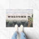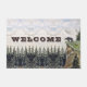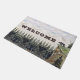 Kan deze beren deurmat personaliseren! Artiest: Harry Bullock Webster - Beer op Cliff. Waterverf 1874-1880. Afbeelding is een impressionistisch schilderij van een zwart beer dat op een klif staat met uitzicht op een donkergroen bos met besneeuwde bergtoppen in de verte. Een deel van het afbeelding wordt over de deurmat herhaald om de horizontale ruimte te vullen.