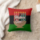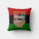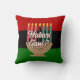 Stijlvolle HABARI GANI? Sierkussen van Kwanzaa, met een pan-Afrikaanse achtergrond van rode, zwarte en groene kaarsen en zeven kaarsen (Mishumaa). Habari Gani? is de typische Swahili-groet tijdens Kwanzaa (wat is het nieuws?), en de reactie zal elk van de Nguzo Saba of zeven principes van Kwanzaa zijn, namelijk Umoja, Kuchagulia, Ujima, Ujamaa, Nia, Kuumba en Imani. Het woord 'Kwanzaa' is toegevoegd als een getild achtergrondpatroon op het rode paneel (optioneel, zodat u kunt bewerken of verwijderen). De individuele principes van Kwanzaa en de overeenkomstige giften zijn ook beschikbaar. Kies uit een brede selectie Kwanzaa-kaarten en geschenken die zijn ontworpen door Berean-Design.