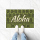 Olijfgroene kleurweg. De boodschap van Aloha verwelkomt uw bezoekers van uw eigen tropische paradijs. De oude Hawaiiaanse tapas zijn de inspiratie voor dit primitieve ontwerp dat wordt gebruikt in de Polynesiaanse en Hawaiiaanse culturen. Deze soorten design werden vaak gedrukt op aloha-shirten en pareaus voor traditionele wandochters. Dit ontwerp komt in verschillende kleuren. U kunt het bericht aanpassen.