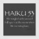 HAIKU 53 is een reflectie op de vleselijke dingen ervaren, verloren, verwijderd, ondergaan, etc., wanneer men op zoek is naar waarheid zoals te zien op Rumble: https://rumble.com/v6z42hc-poem-53.html?mref=3xrjgl&mc=6dc15